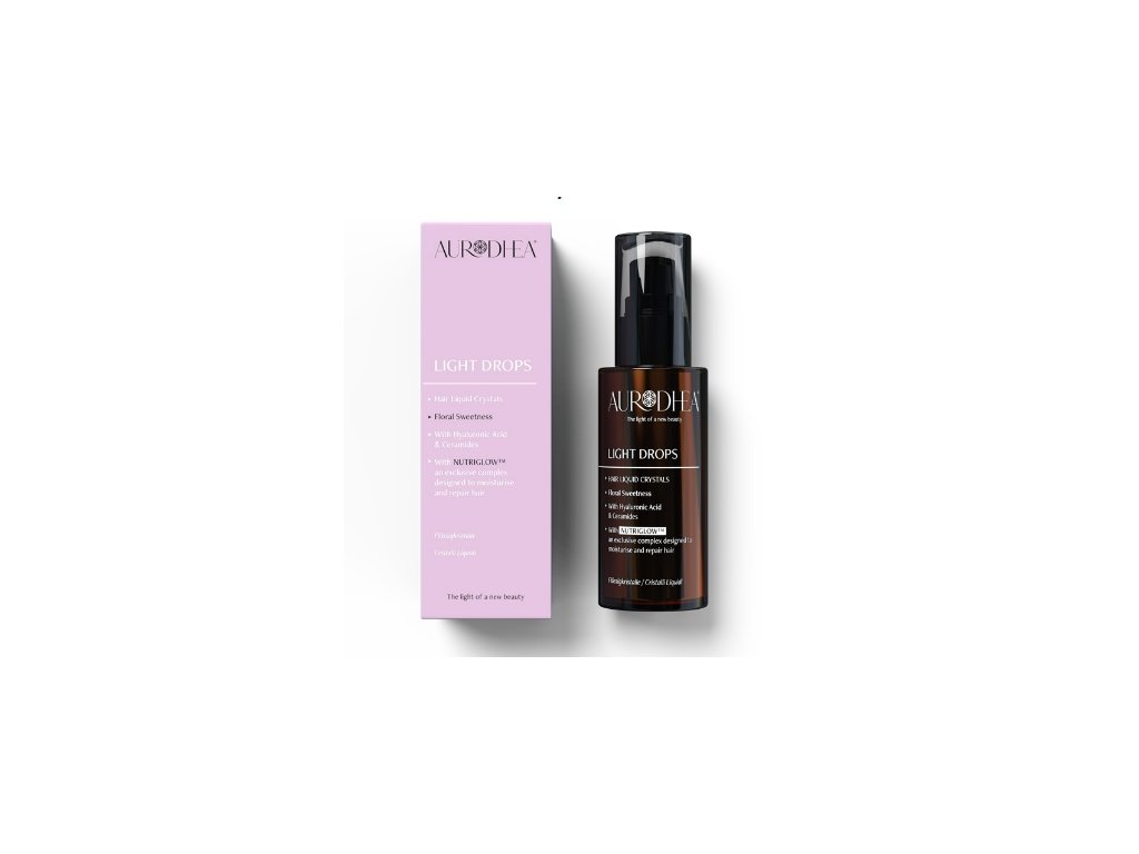 Light Drops 'Floral Sweetness' od Aurodhea je produkt pro finální úpravu navržený tak, aby dodal nový lesk suchým, křehkým a ošetřeným vlasům.