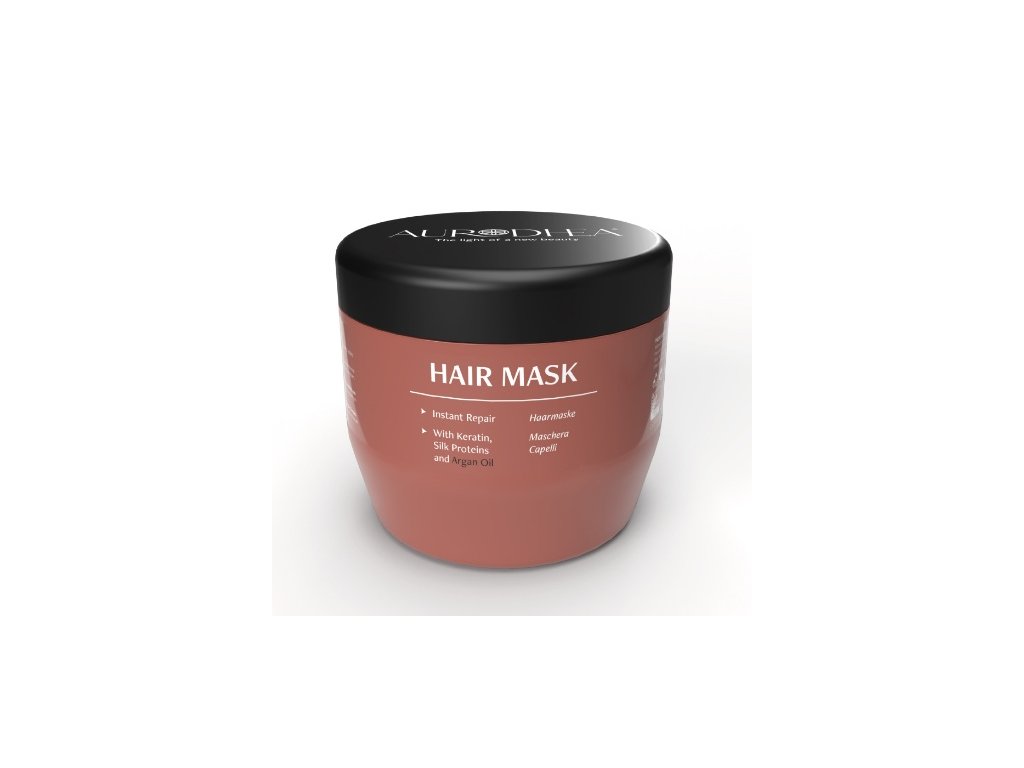Maska na vlasy Aurodhea s arganovým olejem, keratinem a proteiny hedvábí je intenzivní ošetření pro poškozené, zničené a roztřepené konečky vlasů.