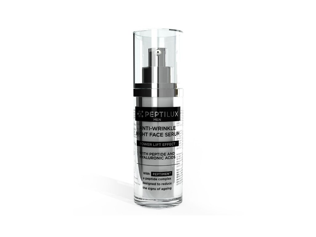 Noční pleťové sérum Peptilux Men s „power lift efektem“ účinně redukuje vrásky a poskytuje hloubkovou hydrataci bez pocitu mastnoty.