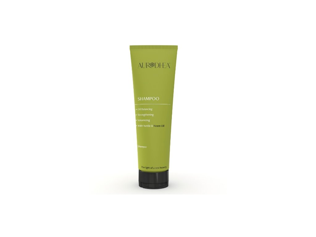 Obohacený o nimbový olej zmírňuje svědění. Tato cenná ingredience se vyznačuje také elastizačními, hydratačními, zklidňujícími a antiseboroickými vlastnostmi. Šampon obsahuje také extrakt z kopřivy, která je známá svými vyrovnávacími a protilupovitými účinky. Šampon s nimbovým olejem Aurodhea zpevňuje vlasy, dodává jim lesk a objem, a zároveň stimuluje jejich růst.